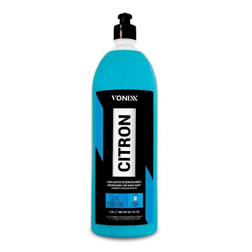 Citron é um lava autos desengraxante. Sua fórmula contém tensoativos especiais e solventes naturais extraídos de cascas de laranja. Citron é ideal para lavagem pesada de veículos, atuando na remoção de graxa, matéria orgânica e ceras, auxiliando na limpeza profunda da pintura do automóvel.