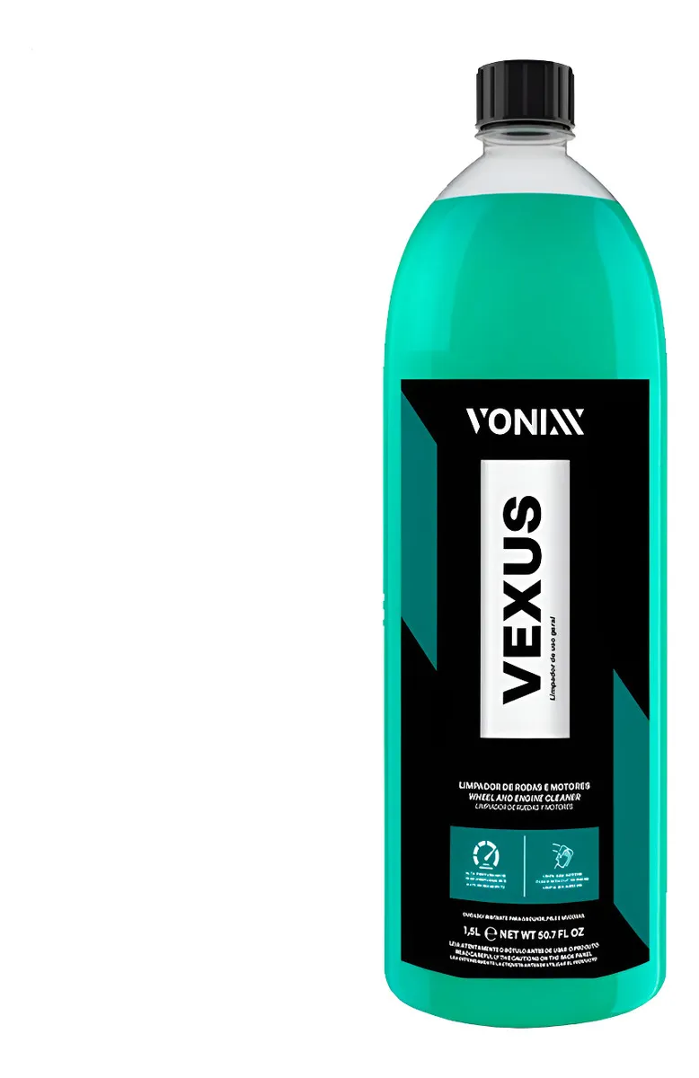 O Vexus Vonixx de 1,5L é um limpador desengraxante de alto poder de limpeza, desenvolvido para remoção eficiente de sujeiras sem agredir a pintura. Sua fórmula equilibrada oferece lubrificação ideal para lavagem segura, minimizando riscos de microabrasões. Pode ser aplicado em lavagens comuns ou detalhadas, com uso de balde ou snow foam, sempre com a carroceria fria e à sombra. Modo de uso; Com o veículo à sombra e a lataria fria, enxágue para remover o excesso de sujeira; Aplique o produto diretamente sobre uma luva ou esponja de lavagem; Esfregue suavemente em movimentos lineares, começando pelas partes superiores; Enxágue completamente com água limpa; Seque com pano de microfibra limpo e seco para evitar manchas. Precauções; Evite aplicar sob sol ou em superfícies aquecidas. Use luvas durante o manuseio e mantenha fora do alcance de crianças e animais. Em caso de contato com os olhos ou pele, lave com água em abundância. Armazene em local fresco, ventilado e longe de fontes de calor.